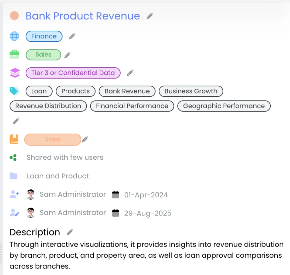 Users can search across all data assets using familiar business terms. Instead of relying on tribal knowledge or sending multiple emails to find the right dataset, they can quickly locate the data they need for analysis or reporting. This reduces project timelines and accelerates insight generation.